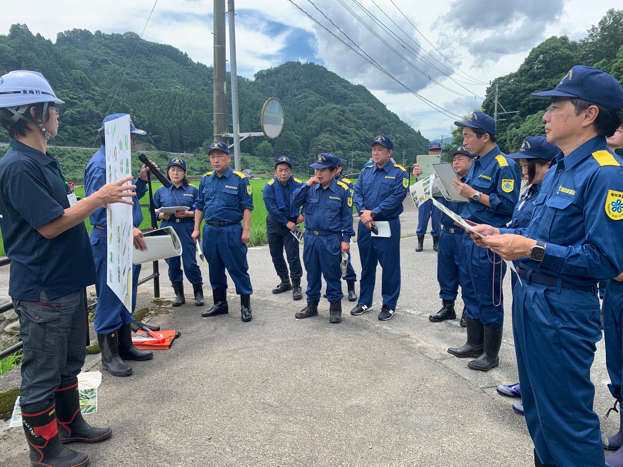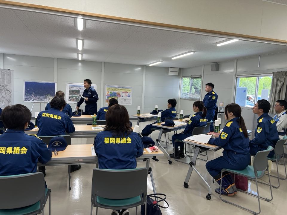 久留米市田主丸の竹野地区では、久留米市選出の新井ふみ子県議の案内で被災者の皆様から現地状況の説明を受け、最後に久留米県土整備事務所で、担当職員から被災状況を時系列・範囲に整理した説明を受け隅々までの把握に努めました。