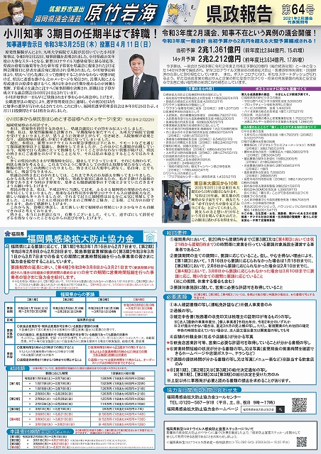 - ・小川知事から県民をはじめとする皆様へのメッセージ(全文)令和3年2月22日