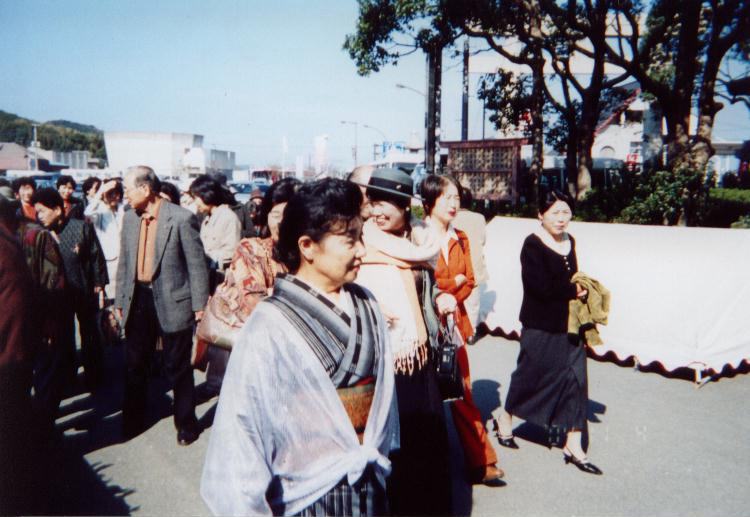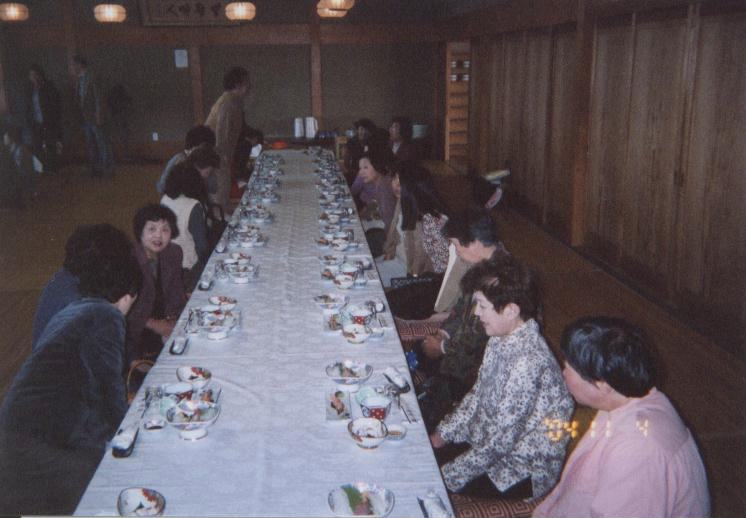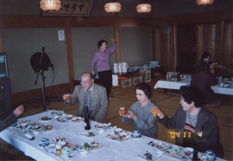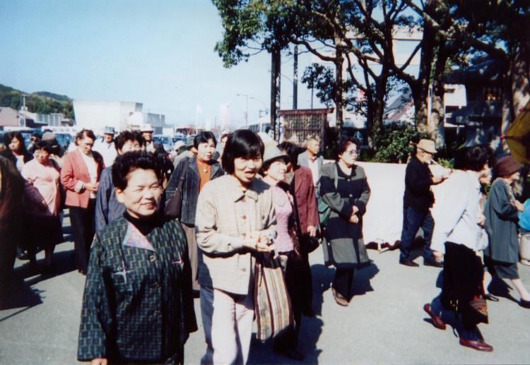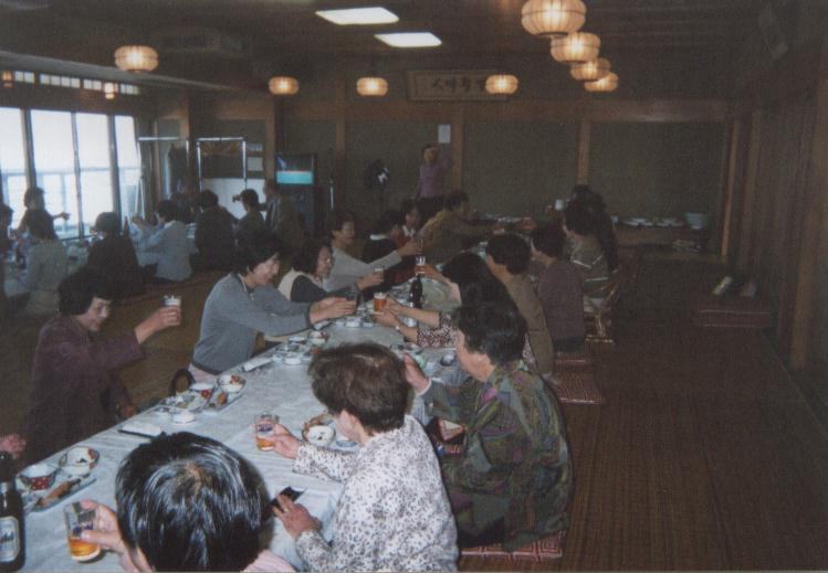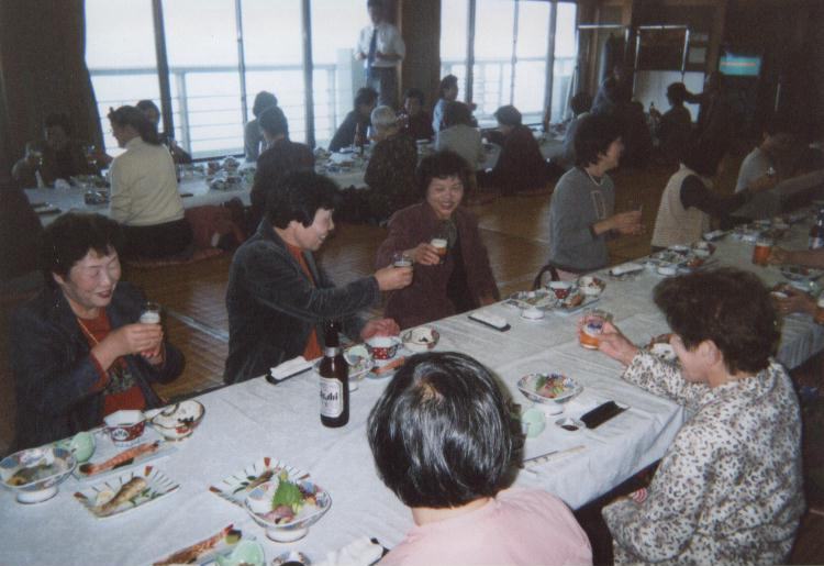 | 平成16年11月4日に女性部の幹事さんを中心に、親睦会として宗像市の宗像大社にお参りし、神湊で食事会を開きました。 初めての顔合わせで大変楽しく、「これからも一致団結して、原竹県議を支えていきましょう」と誓いました。 |