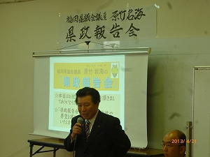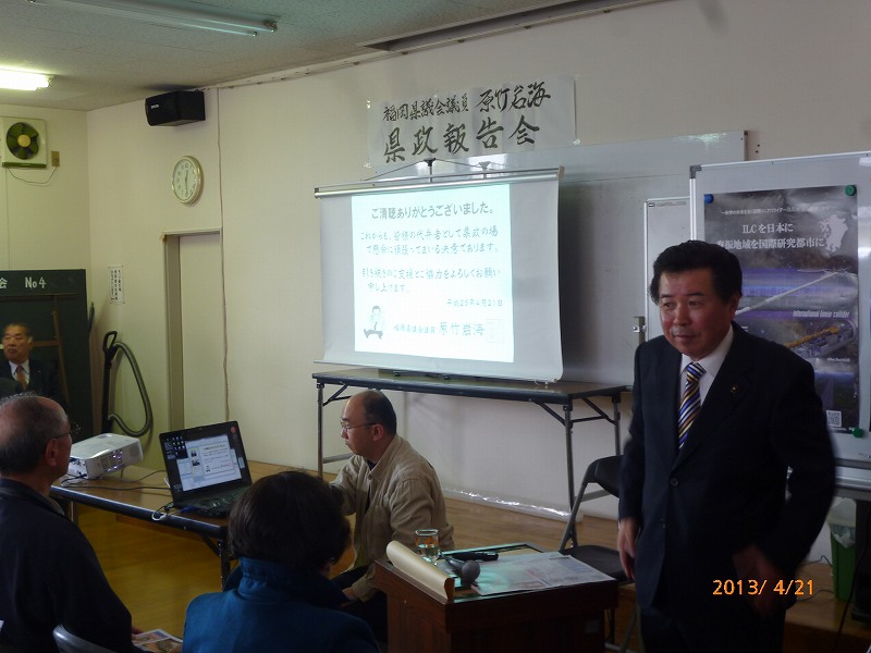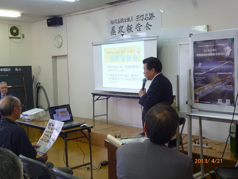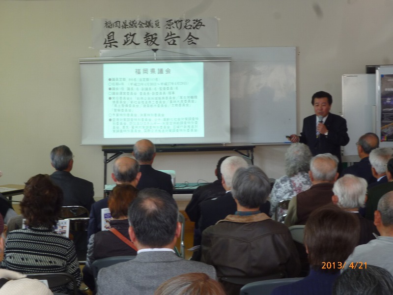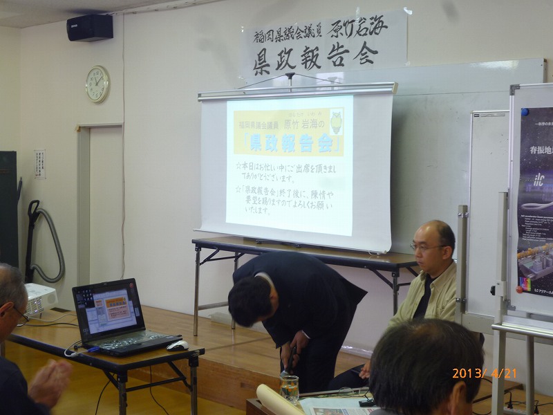 PowerPointを使用しての写真資料による「見える県政-報告会」を開催させていただきました。県政データに始まり、県議会、各地での視察、日々の活動を粒さにご報告させていただきました。